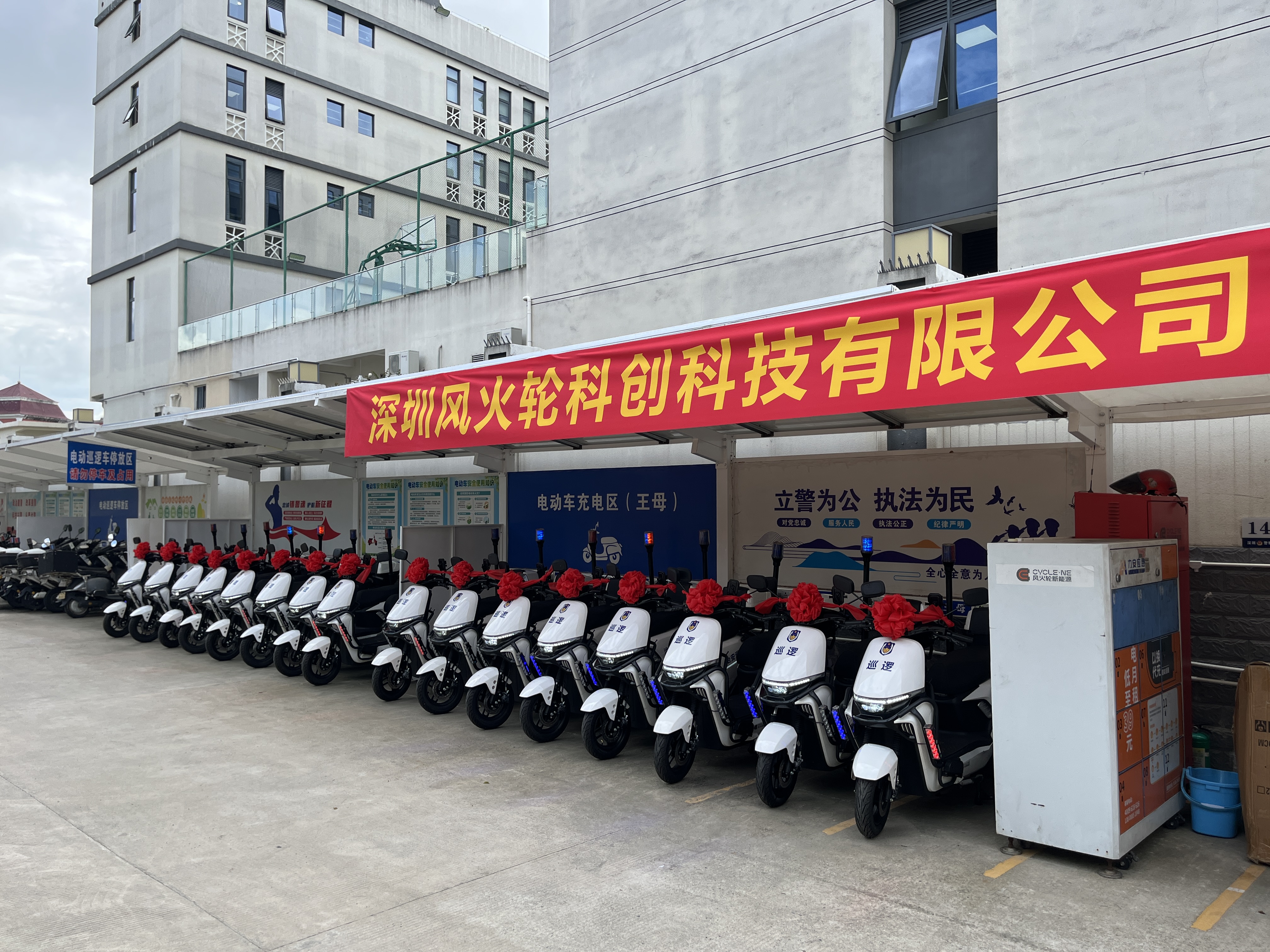 2025 年 8 月 21 日上午,深圳风火轮科创科技有限公司与深圳市大鹏派出所隆重举行电动自行车交车仪式。大鹏派出所邓所等领导与我司总经理林洪辉、副总经理陈荣,共同出席仪式,完成35辆风火轮定制电动自行车的交接。