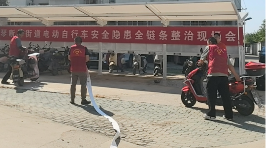 智能系统启动的同时,小区微型消防站的 “灭火尖兵” 也迅速就位。值班人员接警后 3 分钟内抵达现场,一组队员熟练铺设水带,对起火点及周边进行持续冷却,严防锂电池复燃;另一组队员则用防火钩将电动车快速转移至空旷隔离带,彻底阻断火势扩散路径。