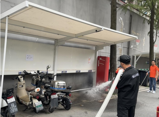 小区微型消防站值班人员接警后,立即启动应急预案,组织安保队员迅速抵达现场,拉警戒线,熟练地铺设水带,对起火点及周边进行冷却降温,重点防止发生二次复燃。同时,另一组队员使用防火钩将周边未起火车辆迅速拖离至空旷隔离带,有效避免了火势向周边车辆及建筑蔓延,整个过程紧张有序。